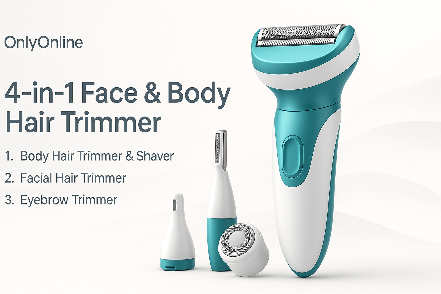 Only online Bloom 4 in 1 Face & Body Hair Trimmer for Women | 3 Heads- Body Trimmer & Shaver, Face Trimmer & Eyebrow Trimmer | Rechargeable | Hair Removal Machine for Women, Green -